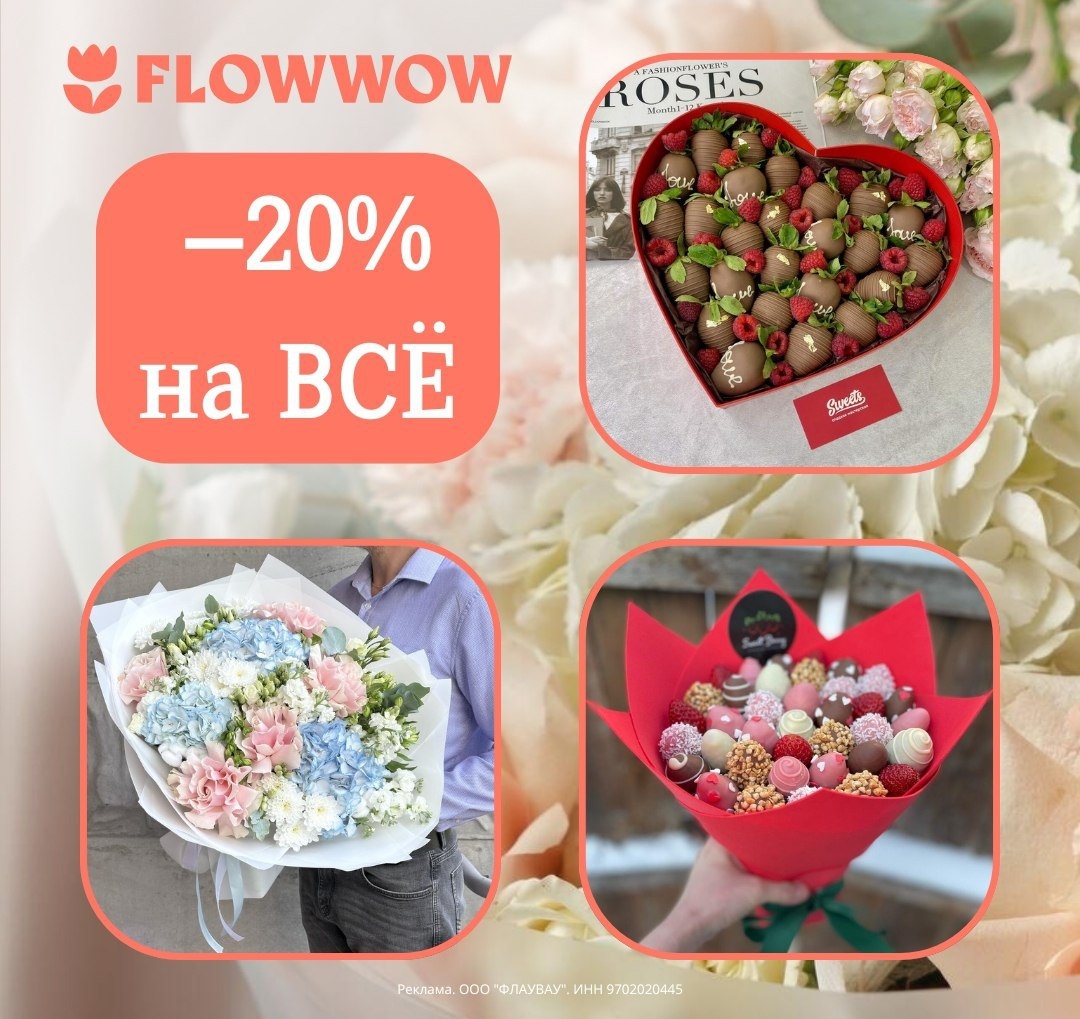 Flowwow дарит нам скидку 20% на ВСЕ категории маркетплейса!