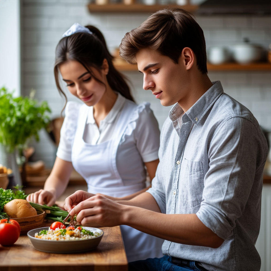 Лариса последовала за ним. Студент расположился за столом, показал горничной место напротив.