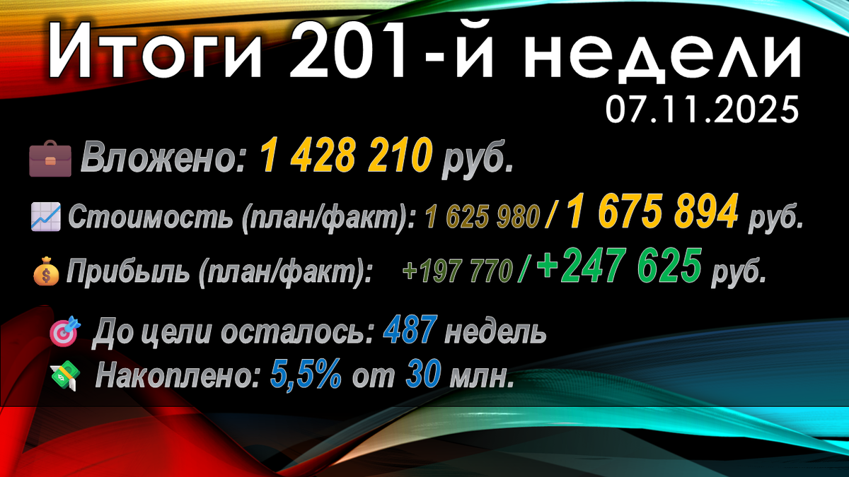- 📌 Инвестировано: 1`428`210 руб. (+8`000 руб. за неделю)