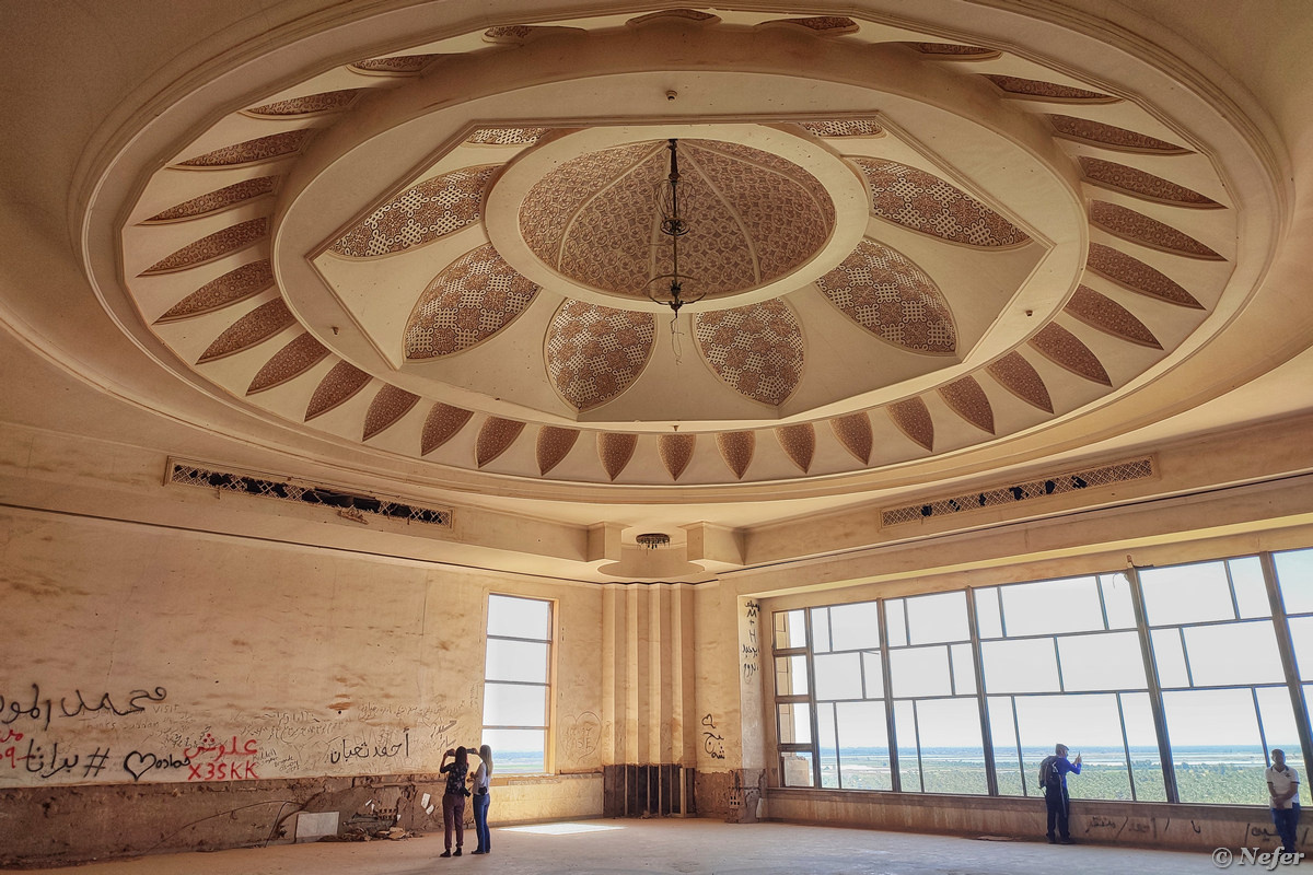 Саддам Хусейн свергнут в декабре 2003 года. В его дворце с видом на Вавилон расположился американский штаб. В 2011-м военные покинули дворец. А так он выглядит сейчас. Дворец охраняется, есть несколько смотрителей, которые следят за порядком. Но никаких билетов покупать не нужно. Просто ходишь и смотришь. Над входом барельеф с узнаваемым профилем. Внутри все давно уже вынесли, но остались люстры и деревянный декор. Типа тронный зал. Под нишей в потолке такая акустика, что чеканящий шаг солдата вызывает резонанс и гулкое эхо, особенно последний приставной шаг. На видео в конце поста попытались сымитировать, чтобы воспроизвести, как это было. Все стены изрисованы краской из баллончиков. Многие проходы завалены хламом и затянуты колючей проволокой. Но мы все же нашли, как подняться на второй этаж. Перил на лестницах нет, немного стремно. На втором этаже ощутимо меньше света, в некоторых помещениях почти совсем темно, фотографии выходят смазанными. К счастью, получилась вот эта