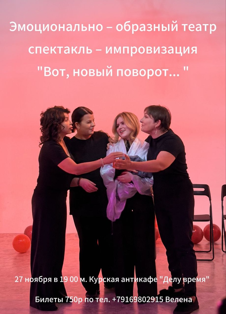 Все мы иногда живём на автопилоте, и нам трудно выйти из зоны комфорта. Хорошо же, когда все предсказуемо и стабильно! Но иногда становится невыносимо в этом комфорте, или чувствуешь, что приходит время двигаться дальше. И тут приходит на помощь Судьба или его величество Случай. И вот - поворот на пути. Был ли у вас момент, когда все вдруг сошло с рельсов, и вас выбило из зоны комфорта? Что для вас это было - падение или освобождение и новые возможности? Или вдруг ты почувствовал , что дальше так нельзя , и решился что поменять в своей жизни. Если бы ваша жизнь была поездом, куда бы вы ехали? Четверг 27 ноября в 19.00 мы готовы играть ваши истории, рассказанные из зала, в пространстве « здесь и сейчас»! Они превратятся в мини спектакль, где актеры без предварительной подготовки создадут импровизацию, как отклик на вашу историю. Мы будем бережны и внимательны! Ждем вас с радостью! Стоимость участия: 750р. Бронь: 8-916-980-29-15 ( телеграмм, вотсап) М.Курская , антикафе « Делу в