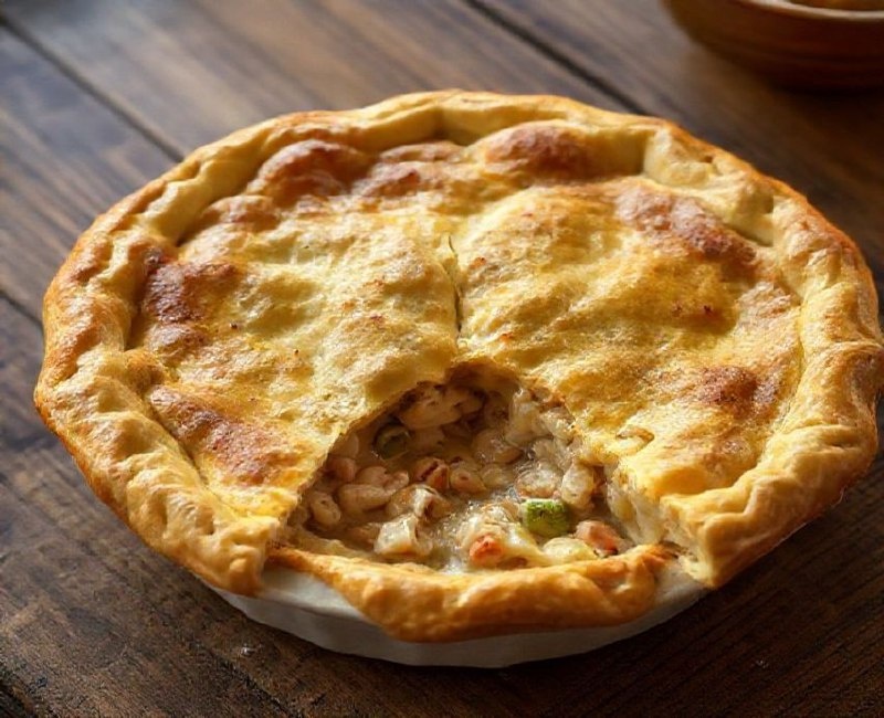 Домашний куриный пирог с овощами и подливкой Куриное филе - 1080 гр. Морковь - 360 гр. Сельдерей - 240 гр. Горошек зеленый консервированный - 150 гр. Фасоль стручковая - 120 гр. Кукуруза консервированная - 150 гр. Лук репчатый - 108 гр. Картофель - 150 гр. Тимьян сушёный - 1.2 гр. Соль - 3 гр. Перец черный молотый - 1.2 гр. Мука пшеничная - 30 гр. Молоко - 120 мл. Масло сливочное - 90 гр. Тесто бездрожжевое слоеное - 420 гр. Яйцо куриное - 60 гр. пошаговый рецепт на cookhelp.ru #измяса #простыерецепты #требуетвремени #курица #рецепты #cookhelp
