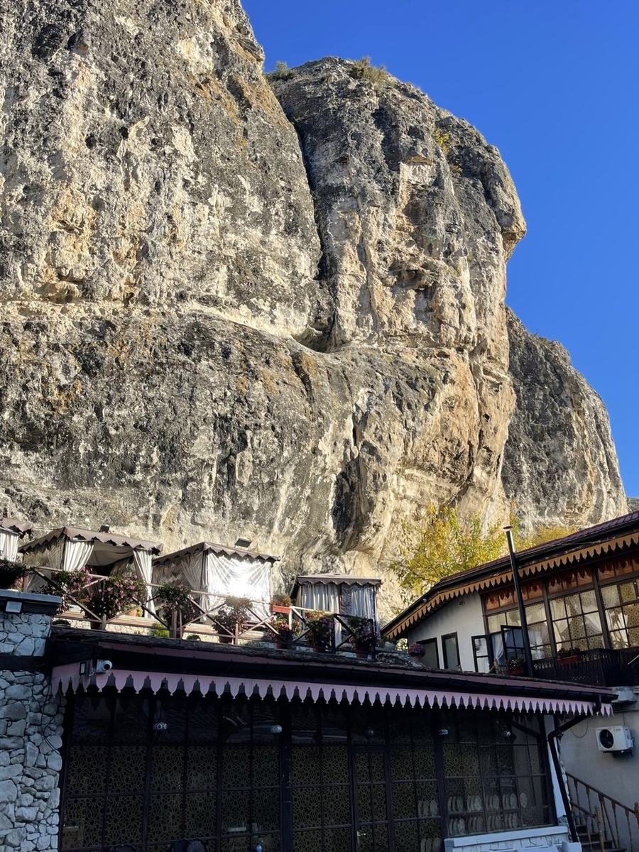 Вот эти горы позволяли вырубать в них такие пещерки, камень мягкий, Инкерманский известняк, а климат, теплый, способствовал тому, что люди в этих нишах могли довольно долго находиться. Нужно было только от дождя защищаться, холод их не донимал особенно 😏