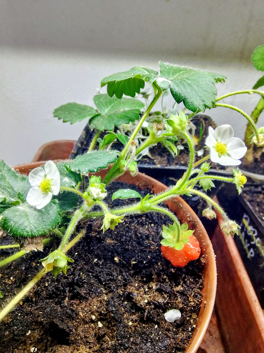 Здравствуйте! В своих основных статьях о наших буднях иногда вскользь я упоминаю о дополнительных растениях которые забрала в дом так скажем на зимовку как "маточные" растения. Долго собиралась с мыслями а надо ли о них рассказать, задала вопрос и решила всё таки поделиться, вдруг для кого то эта информация будет полезна. Что то заносили в дом прям укореннеными черенками а что то и полноценными растениями, давайте обо всём по порядку Первый мой опытный образец ремонтная клубника 🍓 - есть у меня такая мечта, иметь небольшой урожай ягоды круглый год. Для начала хочу посмотреть как вообще будет себя вести в домашних условиях кустик хватит ли ему обычного ухода или чтобы получать хоть небольшой урожай надо делать "танцы с бубнами" пока мне всё нравится, потихоньку спеют по пару ягодок, появляются новые цветочки Правда доспеть ягоде не дают как положено, дети ходят вокруг да около всё наровяться стащить 😁 так уже пропало несколько штук ) Нашла для примера в открытом доступе картинку, во