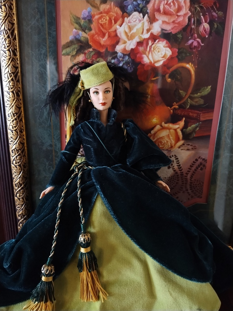 Всем доброго дня! Начинаю показ своих самых ценных и редких кукол. Действительно раритет и уникальные экземпляры. Моя гордость и моя радость. И открывает этот ряд легендарная, поистине бесценная кукла Барби - Скарлет О'Хара из знаменитого романа Маргарет Митчелл " Унесенные ветром". Которая является также портретной куклой актрисы Вивьен Ли. Как известно, кукол, созданных по сюжету этого романа -множество. Есть и фарфоровые куклы ( и у меня есть одна, обязательно покажу). Есть и Барби, конечно. Причем много разных модификаций и образов. Но самый,наверное, ценный и популярный у коллекционеров - именно этот образ, эта кукла Барби, созданая компаний Маттел в 2001 году. Которая воссоздает образ Скарлет в ее аутентичном наряде- платье из зеленого бархата, сшитом ею самой из шторы. Я даже не надеялась и не искала эту уникальную куклу - как и многие мои сокровища, она пришла ко мне неожиданно. Случайно. Как подарок с небес Простов один из обычных посещений своего любимого комиссионого м