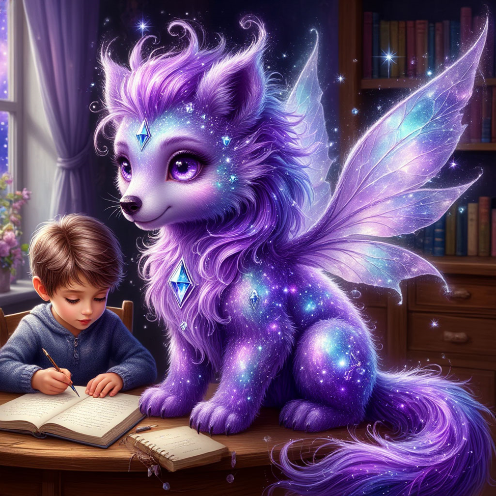 В обычной школе, где пахло мелом и свежими булками из столовой, учился мальчик Ваня. Больше всего на свете он не любил уроки математики. Цифры путались в голове, задачи казались скучными, а тетрадь превращалась в поле битвы с кляксами. Однажды вечером, когда Ваня снова сидел над домашним заданием, в его комнате появился Семирик. Он мягко приземлился на учебник и посветил своими алмазами прямо на страницу с задачами. — Привет, Ваня! — прошептал он. — Я вижу, числа ведут себя как непослушные котята. Хочешь, я научу их слушаться? Ваня с недоумением посмотрел на светящееся существо. Но грусть от несделанных уроков была так велика, что он кивнул. Семирик взмахнул лапкой, и произошло чудо. Цифры с страницы ожили! • Единичка подпрыгнула и стала гимнастом на линейке
