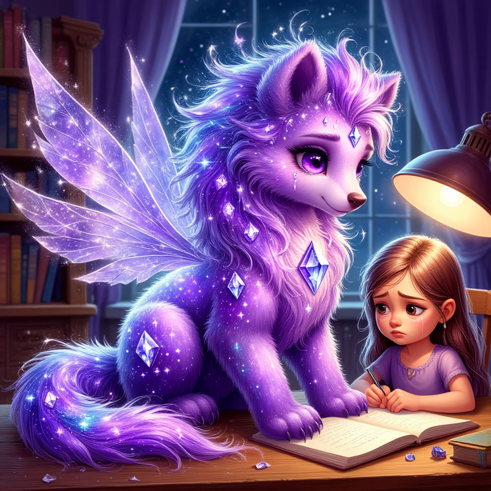 В том же классе, где учился Ваня, была девочка София. Она обожала читать сказки, но когда дело доходило до правил русского языка, её охватывала тоска. Безударные гласные, парные согласные, сложные предложения — всё это казалось таким запутанным! Однажды вечером София сидела над упражнением о безударных гласных в корне слова. Слёзы капали на страницу, размывая чернила. Вдруг в комнате появилось знакомое сияние. — Привет, София! — прошептал Семирик, мягко садясь на край стола. — Я вижу, буквы играют с тобой в прятки. Хочешь узнать их секреты? София кивнула, вытирая слёзы. Семирик взмахнул лапкой, и буквы в учебнике ожили! Буква «О» выкатилась как круглый колобок: «Когда я под ударением — я сильная и чёткая! Но когда я безударная — я могу превращаться в «А» или «Е»!» Буква «Е» закружилась в танце: «А я часто работаю невидимкой! После гласных и в начале слова я даю звук «ЙЭ», а после согласных просто смягчаю их!» Семирик показал Софии удивительные вещи: — Смотри! — сказал Семирик. — «Снеж-