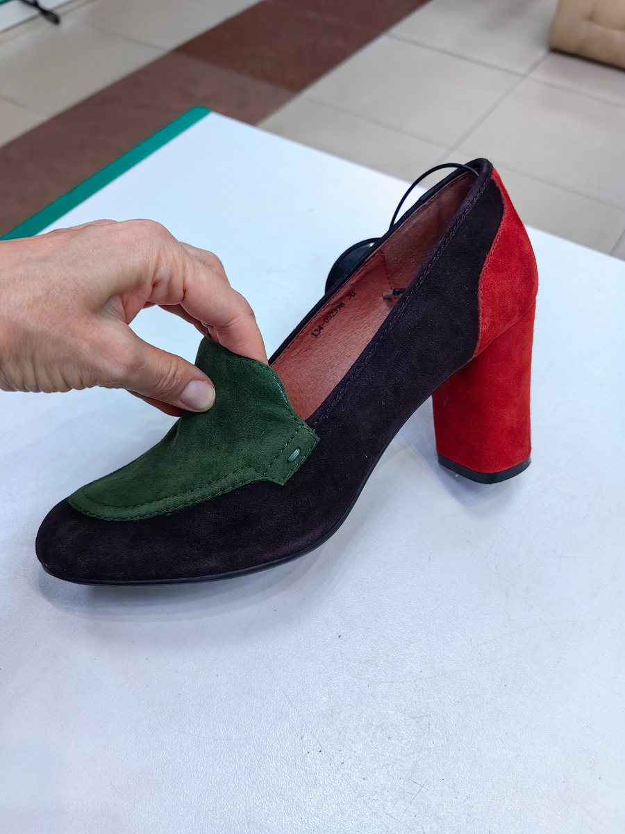 И начать хочу с обуви. Увидела и купила вот такие красивущие туфли из замши от Респект. Комбинация цветов, форма, качество исполнения - все в них великолепно. Очень понравились! Я надеюсь, их новая владелица тоже ими довольна.