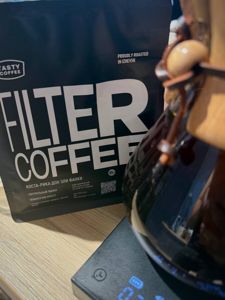 меня предупреждали, а я вас Коста-Рика Дон Эли Фанки это зерно ферментировалось целых 10 суток думаете, это могло не повлиять на результат? перед нами просто ярчайший кофе как сверхновая в сравнении с фейерверком как сингулярность в сравнении с комками в манной каше как видимая вселенная в сравнении с кладовкой отлично читаемые ежевика и нектарин в горячем напитке, ощутимый миндаль (я ем его понемногу каждый день, здесь сразу поймал) ну и не знаю насчет красного вермута но такая ферментация, разумеется, оставила неизгладимый алкогольный след кстати, тут был тот редкий случай, когда зерно на ароматику хуже, чем на вкус подводя итог, если любите, чтобы кофе с ноги пробивал вам рецепторы, то этот ваш