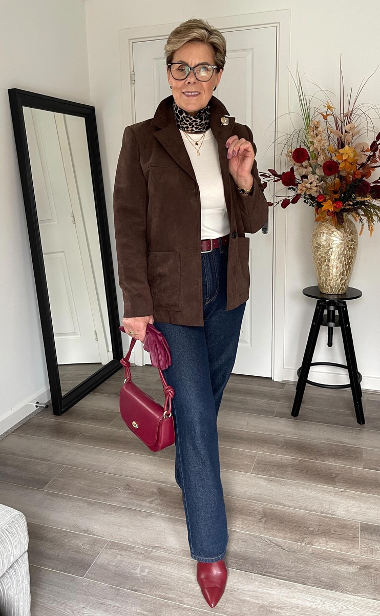 Для женщин элегантного возраста, стремящихся выглядеть стильно и уверенно, осень предлагает множество возможностей для создания гармоничных и запоминающихся образов. Сегодня представлю вам 10 вдохновляющих ансамблей от модницы за 65, которая доказывает, что возраст – это лишь цифра, а истинный стиль не имеет границ. Темно-синие прямые джинсы – универсальный вариант, который подходит практически всем. Замшевый пиджак в благородном коричневом оттенке добавляет образу текстуры и элегантности. Сапоги, сумка и перчатки по цвету перекликаются с ремнем. Акцентные детали: леопардовый платок, брош в виде лепестка. Наша героиня не боится ярких оттенков, и этот образ – тому подтверждение. Короткий кардиган оранжевого цвета – яркий и жизнерадостный акцент, который гармонично смотрится с коричневыми брюками. Оранжевый платок, аккуратно повязанный на шее, не только добавляет цветовой акцент, но и деликатно скрывает видимые изменения. Замшевые сапоги и сумка-тоут в коричневом цвете создают единую цв