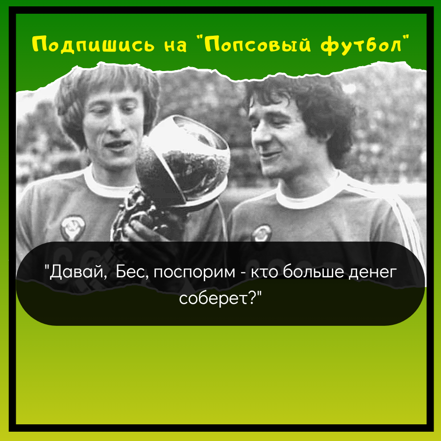 Две звезды советского футбола сели у стены бара, сняли ондатровые шапки и начали просить милостыню. Реакция прохожих была бесценной: "Кто-то узнал, кто-то нет: "Такие молодые - уже побираетесь…"". В итоге накидали много. Победил Бессонов - он просил на украинском.