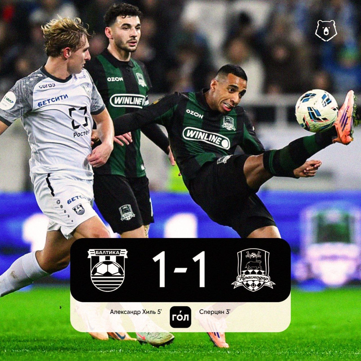 «Краснодар» сыграл вничью с «Балтикой» и вернулся на первое место в турнирной таблице РПЛ