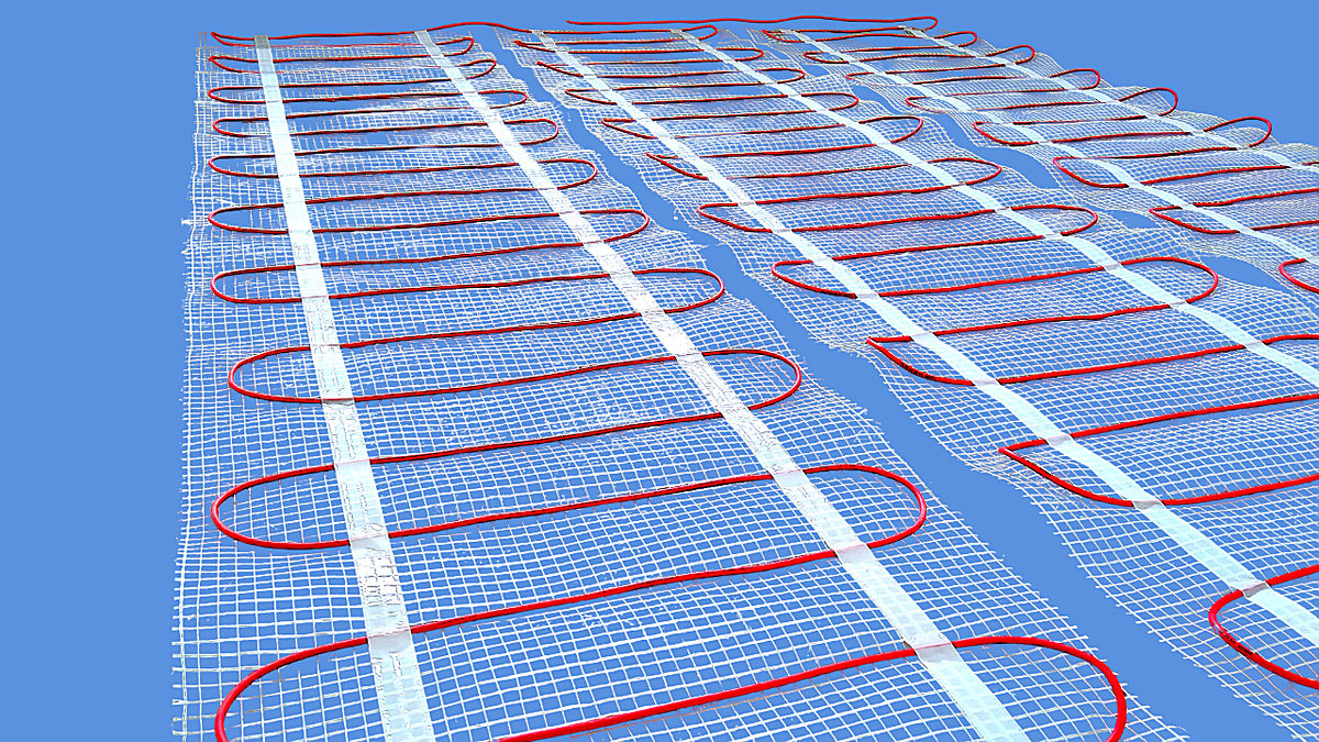 Сетку мата для поворота укладки в другом направлении можно смело разрезать ножом или вообще удалять на каких-то участках, если это необходимо для удобства, только нужно следить, чтобы расстояние между петлями кабеля было равномерным, как на сетке.