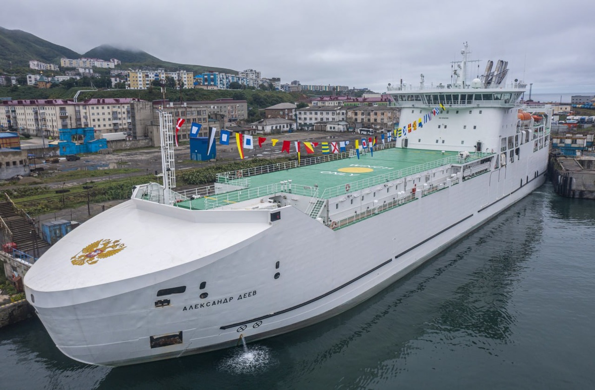 Есть такие суда, о которых очень хочется рассказать, увидев их хотя бы один раз. Лично для МорфлоСПб таким судном безусловно является грузопассажирский автомобильно-железнодорожный паром «Александр Деев», построенный корабелами Амурского судостроительного завода ОСК по проекту CNF11CPD, разработанному специалистами конструкторского бюро ОСК «Вымпел». Отдельно отметим герб РФ в носовой части судна. Как говорится, виден издалека! Можно сказать, что здесь все сложилось, как и планировалось. В настоящее время паром работает на линии Ванино — Холмск, надежно обеспечивая перевозку необходимого груза. Достаточно сказать, что «Александр Деев» имеет неограниченный район плавания. Соответственно, вне зависимости от погодных условий судно является надежным связующим звеном между Сахалином и материковой частью России. Это самое лучшее доказательство реализации отечественными специалистами таких проектов на практике. Можно сказать, продумано все, включая название судна, которое носит имя бывшего ди