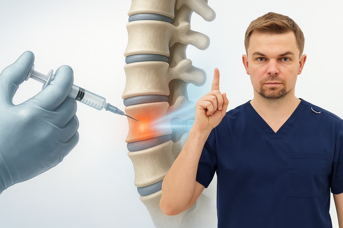 Сегодня я хочу расказать вам о эпидуральной блокаде. В 9 из 10 случаев боль в спине и ноге идёт не от грушевидной мышцы, а от проблемы на уровне позвоночника.
