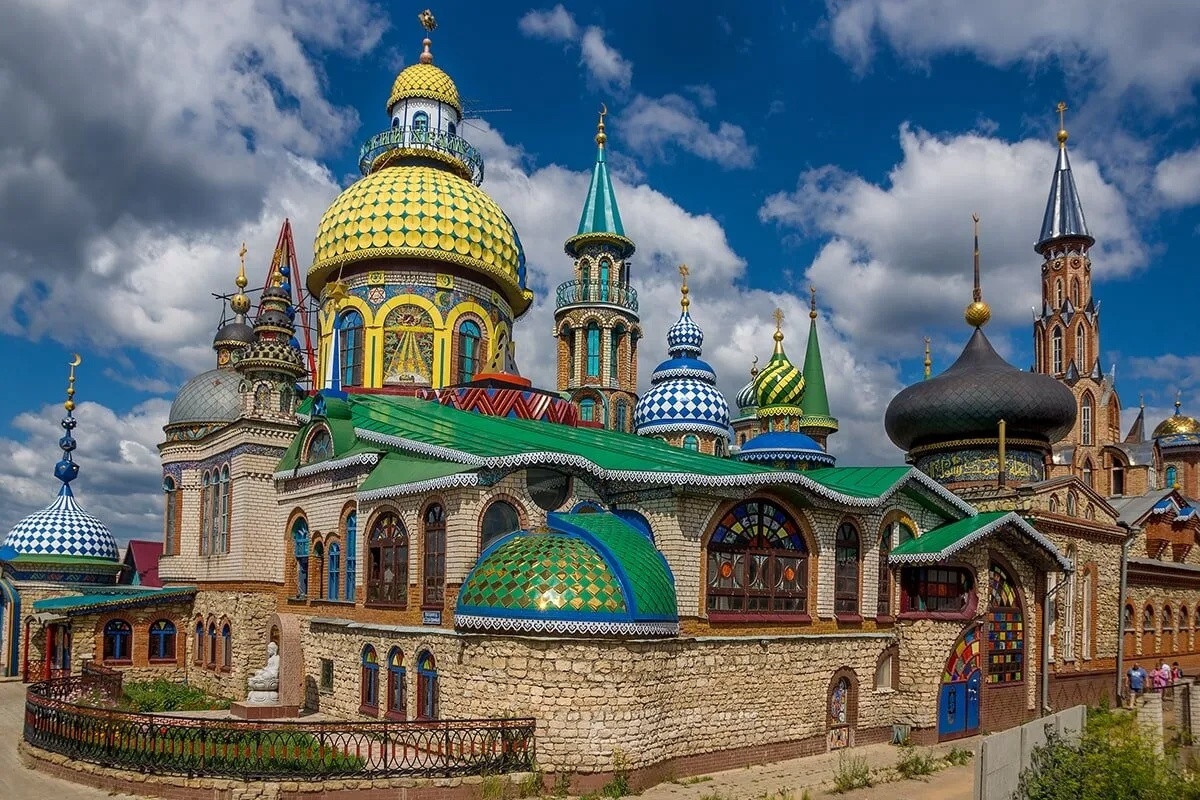 Вселенский храм или храм всех религий выглядит очень необычно: купола, башенки, мозаики — словно кусочек сказки или мультфильма, где спокойно соседствуют крест, полумесяц, звезда Давида и буддийский шпиль. Здесь можно побывать в Египте, Индии, Европе... и всё это — не выходя за пределы одного двора. Как родилась идея «Храма всех религий» История этого удивительного комплекса началась в 1994 году.