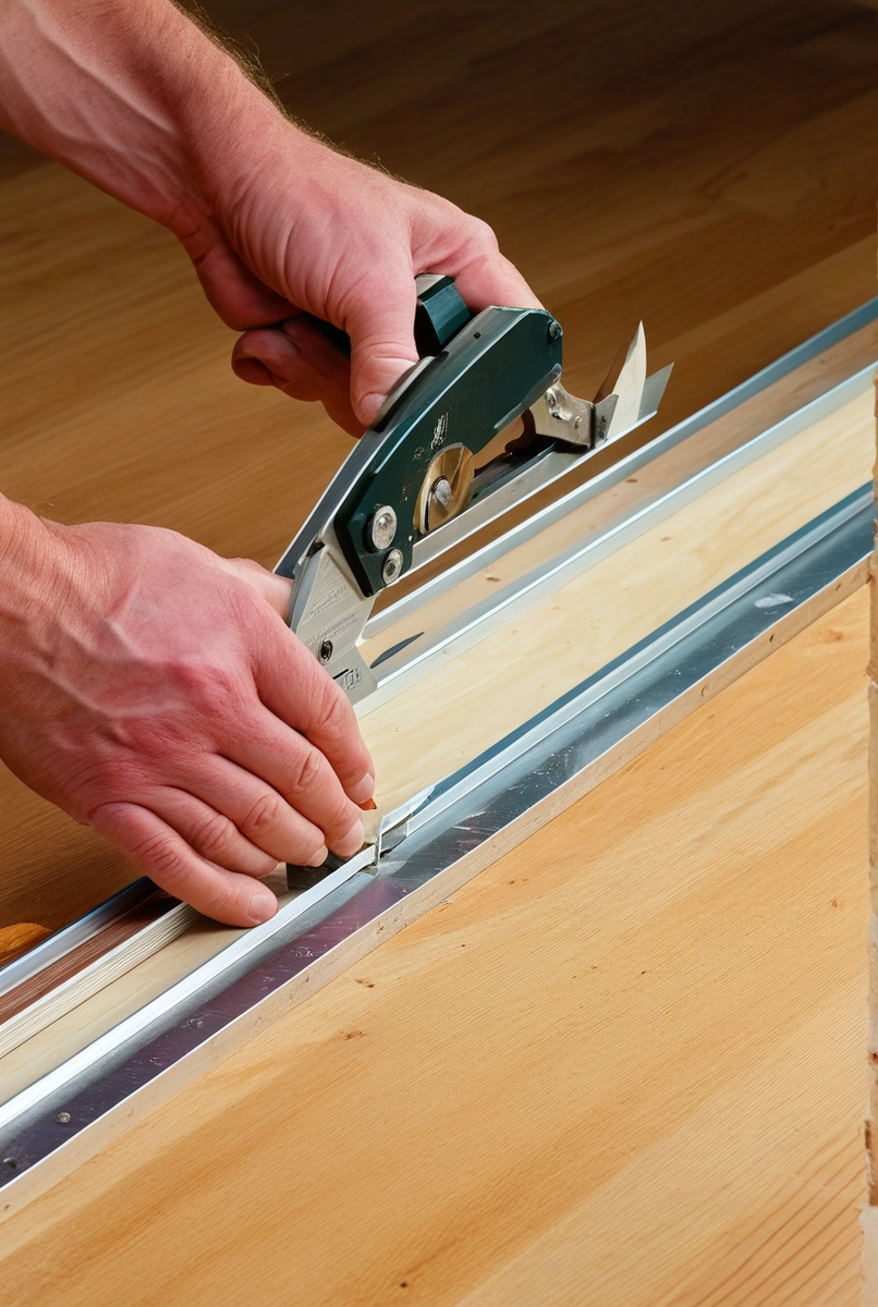 - Предварительная разметка. Это первый и очень важный шаг. С помощью карандаша и линейки или угольника нанесите на профиль точную линию будущего среза. Правильная разметка — половина успеха для идеального стыка.