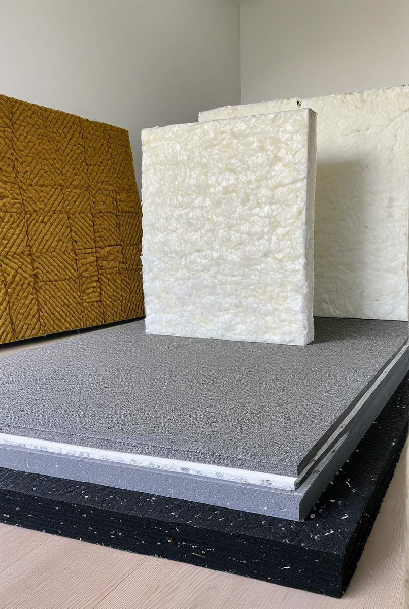 - Технические характеристики для подбора материала: толщина материала, плотность, индекс Rw, коэффициент звукопоглощения, экологичность и горючесть.