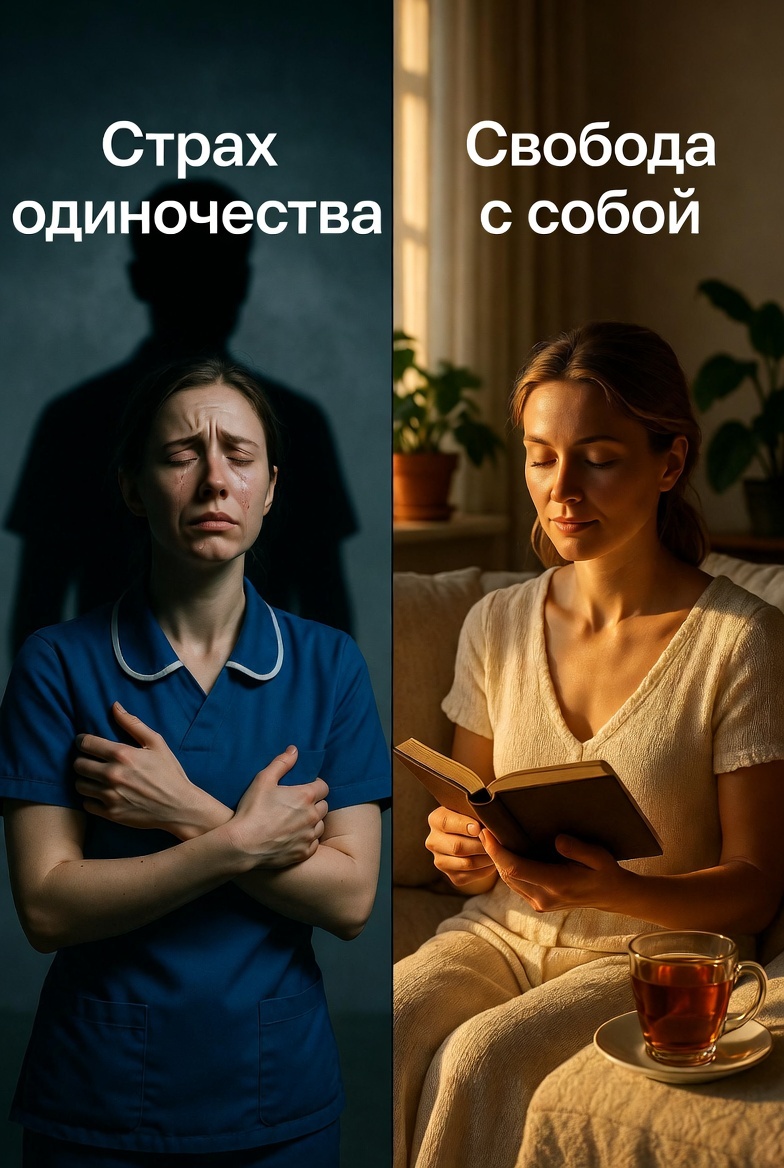 Цепляетесь за человека, который вам не подходит, потому что «хоть кто-то»? Паникуете, когда партнёр уезжает на пару дней? Соглашаетесь на унижения, измены, пренебрежение — только бы не потерять отношения? Если да, вы знакомы со страхом одиночества. Этот страх превращает вас в жертву: вы терпите недопустимое, жертвуете собой, живёте чужой жизнью. Всё потому, что мысль «я буду один» кажется хуже любого кошмара. Но откуда эта убеждённость, что одиночество — это конец? И что, если я скажу, что одиночество может быть не врагом, а союзником? Что умение быть с собой — это не проклятие, а свобода?