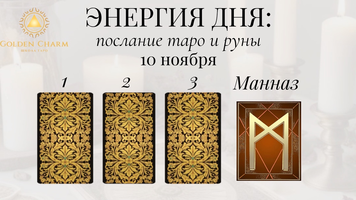 Заказать личный расклад тут✅ Прогноз на 10 ноября : что тебя ждёт Приходи на обучение Таро ✅ Выбери карту — 1, 2 или 3 — и узнай, какой путь для тебя: 1. 3 Жезлов Время ожидания результатов. Ты стоишь на пороге больших перемен. Готовься принять успех, новые горизонты откроются перед тобой. Будь терпелив и наблюдателен. 2. Солнце Наступил период радости и гармонии. День наполнится светом, счастьем и удачей. Наслаждайся моментом, ведь твоя жизнь прекрасна именно сейчас. 3. Мир Финальная точка твоего путешествия близка. Гармония, целостность и чувство выполненного долга придут в этот день. Примирись с прошлым, отпразднуй достижения и приготовься к новому витку жизни. Руна дня — Манназ Сегодня твои отношения будут играть ключевую роль. Важно видеть своё отражение в окружающих и взаимодействовать искренне. Напиши цифру карты + МАННАЗ в комментариях, чтобы активировать энергию. Хочешь личный расклад? Пиши — посмотрим, что ждёт тебя: Заказать личный расклад тут✅ Обучение Таро и Р