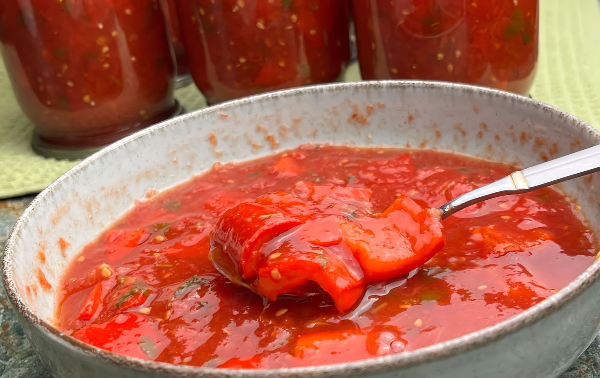 🇬🇪 Грузинское лечо – острое! С аджикой или свежим острым перцем, кинзой, хмели-сунели. Настоящий огонек зимой.
