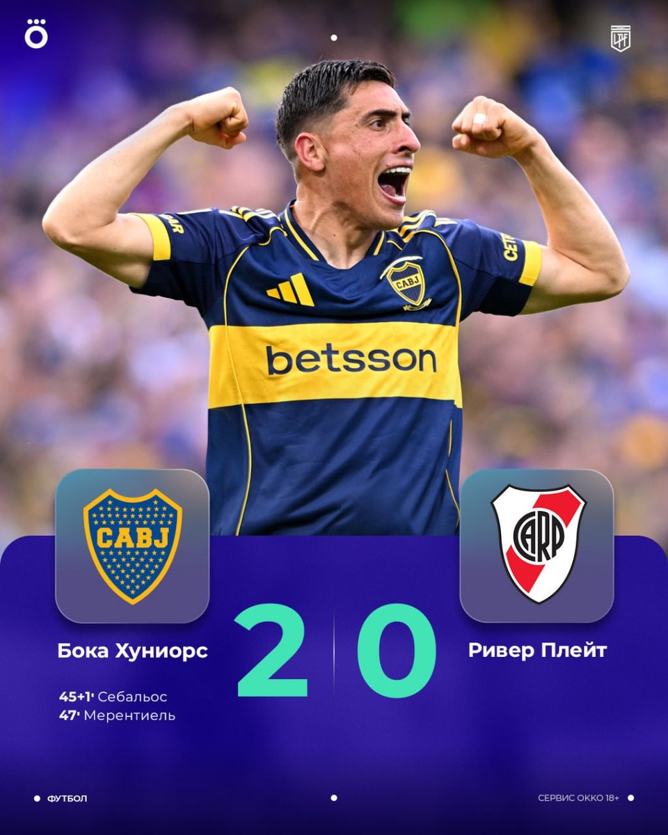 Суперкласико — за «Бокой» 💪🏻 Сине-золотые обыграли «Ривер» и поднялись на 1-ю строчку за тур до конца Клаусуры. 10 желтых карточек — как обязательный атрибут главного матча Латинской Америки! 😎