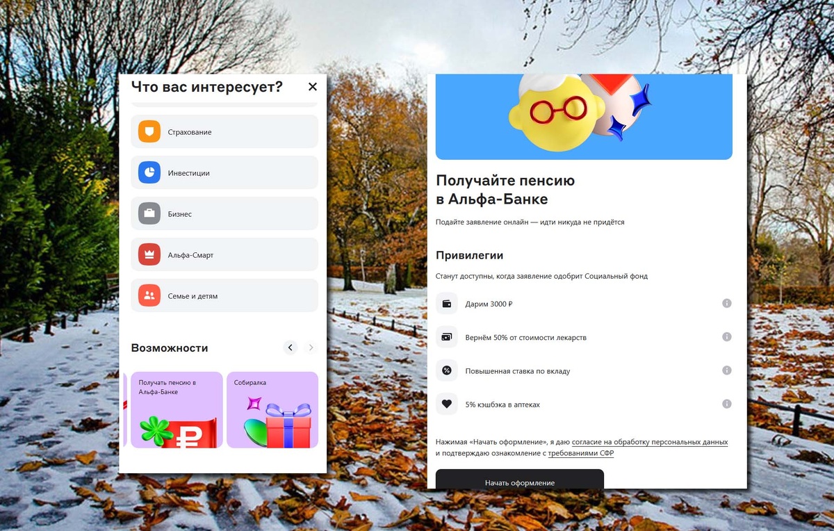 Альфа Банк дает 3000 рублей за перевод пенсии в ноябре, декабре и, возможно, на постоянной основе