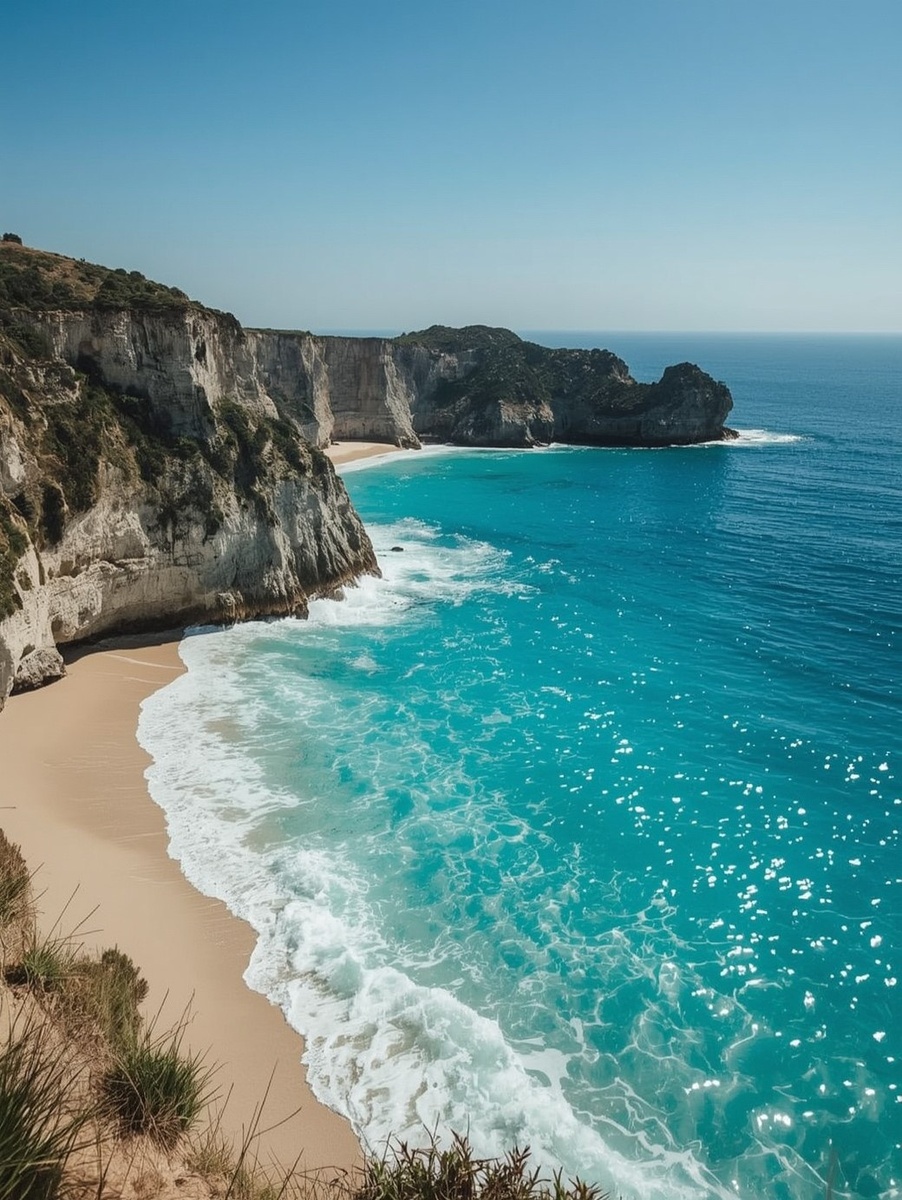 Безмятежный пейзаж с бирюзовой водой. Нейросеть: Leonardo. Preset: Lucid Realism. Промпт: Яркий безмятежный морской пейзаж, бирюзовые воды, сверкающие под солнцем, контрастируют с изрезанными скалами, разбросанными вдоль нетронутого пляжа. Сцена запечатлена с потрясающим реализмом, демонстрирующим спокойствие и красоту природы. Кристально чистые воды отражают ярко-голубое небо, создавая живописный вид, который переносит зрителя в тихий прибрежный рай. Каждая деталь, от текстуры скал до нежных волн, набегающих на берег, мастерски передана, вызывая ощущение спокойствия и безмятежности. Это высококачественное изображение действительно передает суть идеального дня на берегу моря. #цифроваяживопись #нейросеть #нейроарт #артыотнейросетей #цифровоефото #идеи #рисунок #нейрофото #нейроSD #пейзаж #DigitalDreamscapes #leonardo #aiartwork #ai #иллюстрация #digitalart #скалы #природа #бесплатныйарт #flux #пляж #арт #море