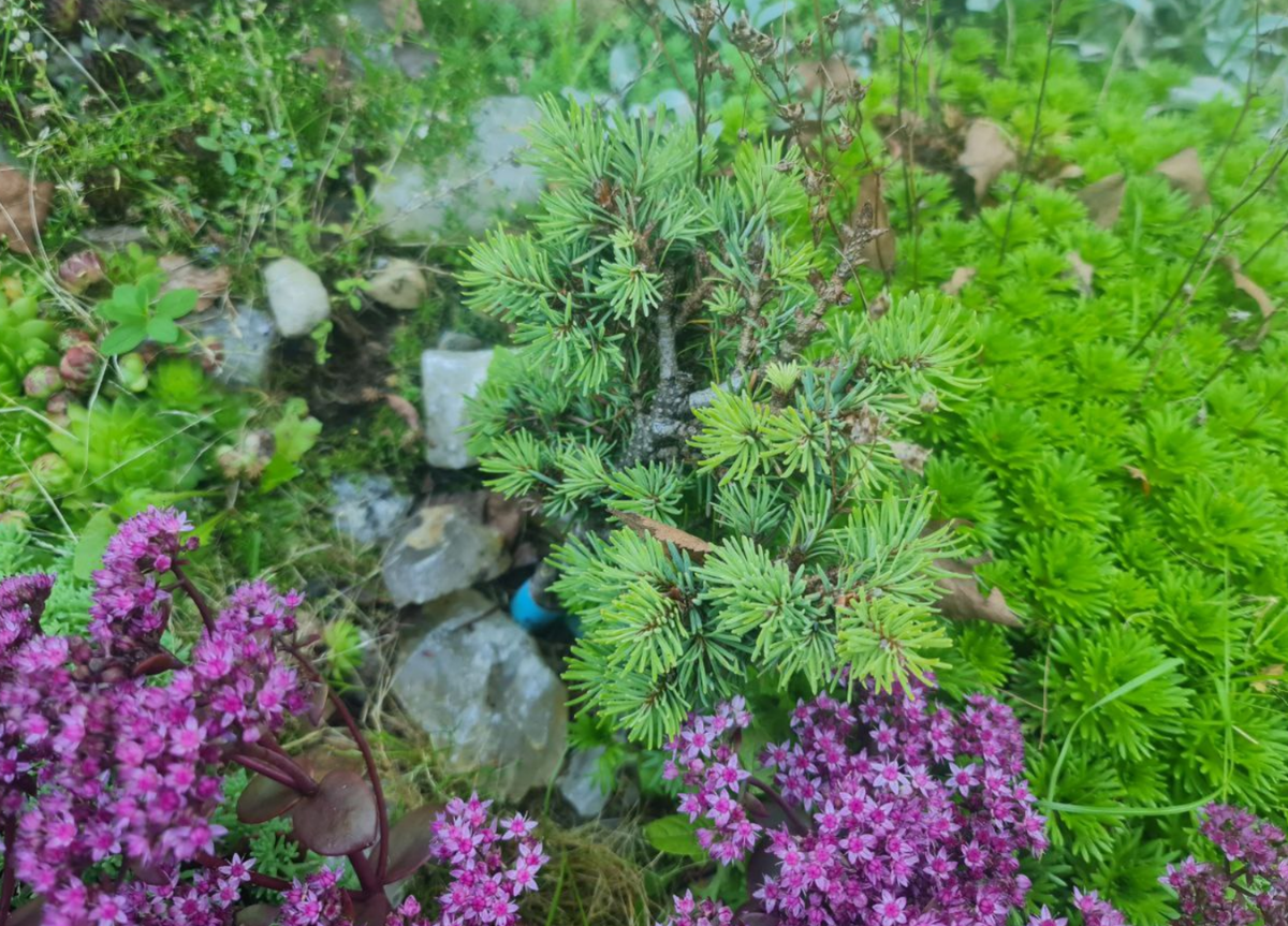 Это миниатюрные, пушистые, синеватые пятихвойные сосны, которые я, наверное, люблю больше всех. Не знаю, почему именно их) Но уже имея набор одинаковых ежей на палках, не устаю расширять ежатню и подсаживать их в самые разные места.
