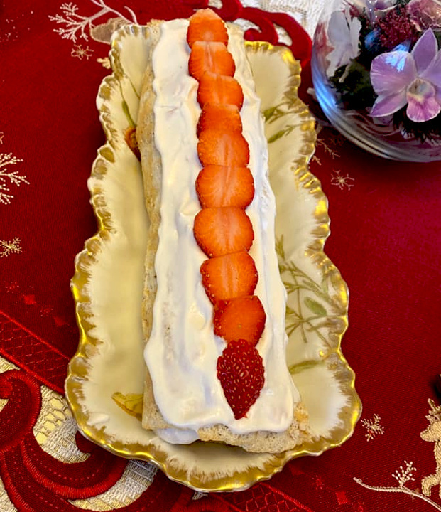 Для бисквита: ✔ Яйца (C1) - 4 шт. (используется 4 белка и только 2 желтка); ✔ Мука миндальная - 2 ст. л. с горкой; ✔ Разрыхлитель - ½ ч. л.; ✔ Лимонный сок - ¼ ч. л.; ✔ Масло (для смазки) – 1 ч. л.; Для крема: ✔ Сливки 33% - 100 г; ✔ Зефир диабетический - ~110 г. Отделяем белки от желтков. Взбиваем белки с лимонным соком, буквально четверть чайной ложки сока. Желтков возьмём 2, иначе получится омлет. Когда белки взбились до крепких пиков, убавляем скорость миксера и по одному вмешиваем 2 желтка. В миндальную муку вмешиваем разрыхлитель, и постепенно всыпаем в белки. Противень застилаем бумагой для выпечки, промасливаем и выливаем наше тесто. Разравниваем и выпекаем 10-12 минут при температуре 180 градусов. Снимаем с противня вместе с бумагой и сворачиваем в рулет. Пока рулет остывает, готовим крем. Для крема я использую зефир без сахара, который продаётся в диабетических отделах. И сливки для взбивания 33% жирности. Я взяла 5 зефиринок, это примерно 110 г, значит, нужно взять столько ж