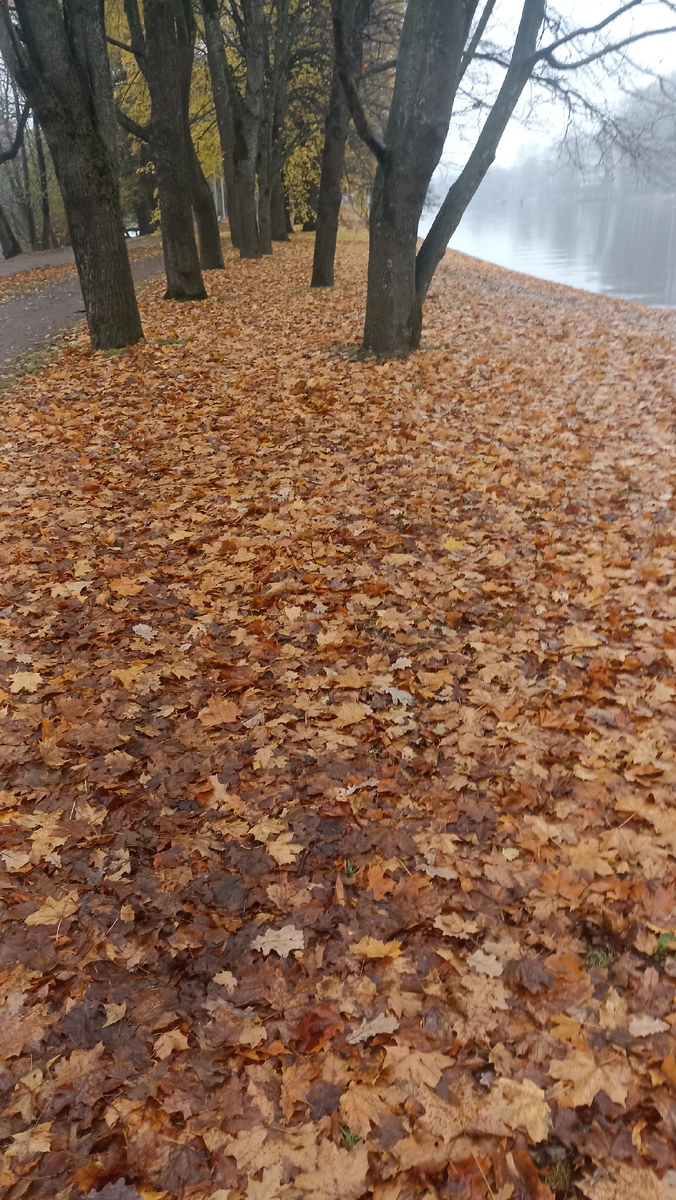 С детства обожаю это осеннее развлечение, пройтись, шурша ногами и поднимая в стороны волны опавшей листвы. Хорошо, что хоть тут нет этой бессмысленной и, больше того, вредной для земли, борьбы с опавшими листьями.