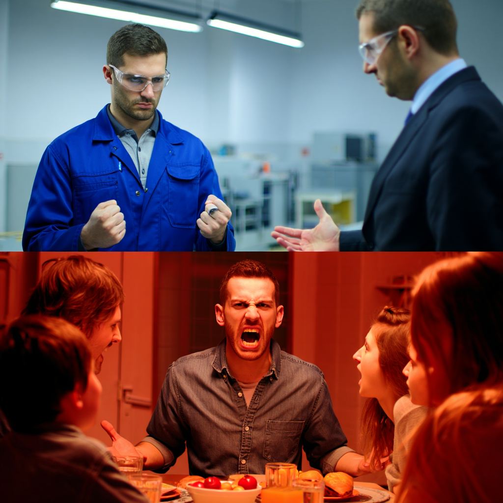 Вот вам Игорь, тридцатишестилетний токарь на заводе. Пришёл с жалобами на «приступы ярости» дома: мог накричать на жену и детей из-за ерунды, потом ужасно стыдился 🔧. На работе — тихий, исполнительный, никогда не конфликтует, даже когда начальник несправедливо отчитывает. Разбираясь, мы нашли паттерн: в детстве отец жёстко подавлял любые проявления эмоций. «Мужчины не плачут и не злятся — мужчины работают молча». Игорь научился глотать гнев. На работе мастер его унижает при всех — Игорь молчит, потому что «нельзя грубить начальству». Коллега подставил — промолчал, «не хочу конфликта». В маршрутке наступили на ногу — проглотил злость. Но гнев-то копится! И к вечеру, в безопасной среде дома, вырывается наружу по любому поводу 💥. Ребёнок разлил сок — взрыв. Жена спросила что-то — срыв. Игорь чувствовал себя чудовищем, но не понимал, что происходит. А происходило вот что: подавленный гнев накапливался весь день и выстреливал там, где безопасно (семья точно не уволит и не ударит в ответ). Сергей Рубинштейн писал: эмоция требует выражения, и если её блокировать в адекватной ситуации, она найдёт неадекватный выход.