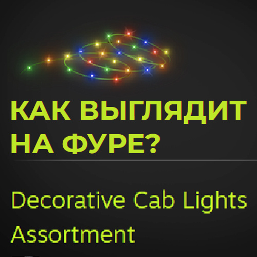 В этом руководстве я рассказываю про то как выглядит предмет из Euro Track Simulator 2 ,который я купил на торговой площадке и не знал как он будет выглядеть на фуре ,для меня это была загадка и ни где не было рассказано про это ,поэтому что бы другие люди могли посмотреть нужен им этот предмет или нет ,я сделал это руководство ,где показывает как выглядит эта гирлянда и что она даёт. Я столкнулся с такой проблемой ,что когда хотел купить такой предмет Decorative Cab Lights Assortment ,но нигде я не мог найти то как этот предмет выглядит в самой игре ,единственное что я видел ,это просто картинка лежащей гирлянды и всё. На момент покупки он стоял 180 рублей ,поэтому меня это останавливало ,ведь можно было купить какие нибудь DLC на скидках и многое другое. Вроде копейки ,но все равно не хотелось их отдавать за какую-то фигню. Для меня это было шагом в пропасть ,я всё таки купил этот предмет... Я ожидал ГОРАЗДО более худшего ,а по факту получил не один предмет ,а сразу 6! Вешаются они з