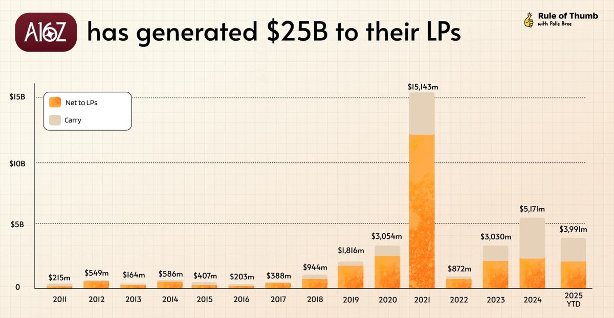 🎉🚀 In just 14 years, a16z has raked in $25 billion for investors