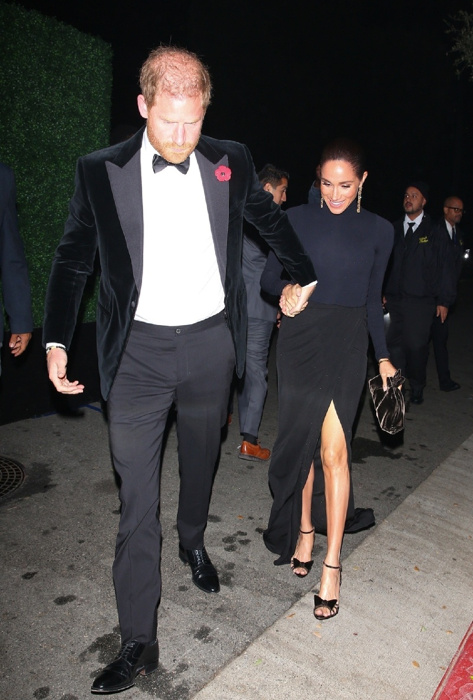 Принц Гарри и Меган Маркл появились на юбилее Крис Дженнер. Мать знаменитых Кардашьян устроила роскошную вечеринку. Среди приглашенных гостей папарацци заметили и скандальную герцогиню с супругом. Меган Маркл привлекла всеобщее внимание своим нарядом. Для выхода в свет герцогиня Сассекская выбрала откровенный образ. Она надела облегающую юбку с очень высоким разрезом. Черный лонгслив дополнил монохромный ансамбль. Скромный принц Гарри предпочел классический смокинг из бархата. Он дополнил образ алой брошью в виде цветка. В Великобритании отмечался День памяти павших, поэтому Гарри продемонстрировал уважение к традиции. Вечеринка Крис Дженнер прошла в роскошном поместье Джеффа Безоса. Миллиардер и его спутница Лорен Санчес предоставили свой дом. Дом находится в престижном районе Беверли-Хиллз. Источник RadarOnline сообщил о присутствии королевской пары. Почему Меган выбрала такой смелый наряд для выхода? Возможно, она хотела привлечь к себе максимум внимания. Ранее Мегин Келли обвинила