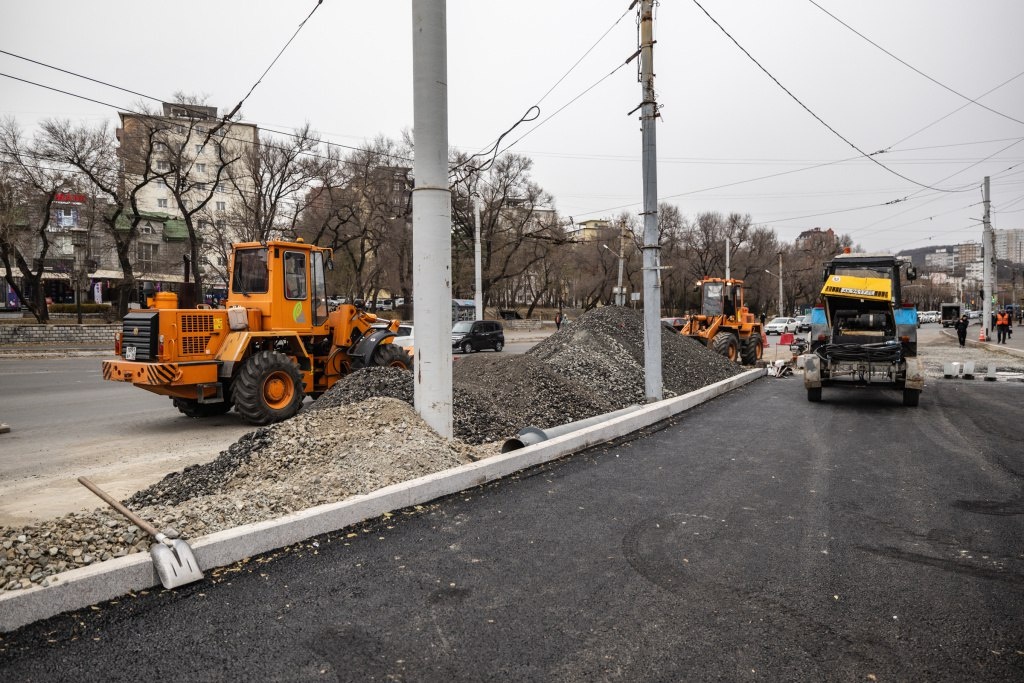 Комплексная реконструкция дороги продолжается на пересечении проспекта 100-летия Владивостока и улицы Русской Уже выполнено асфальтовое покрытие тротуаров, сейчас ведутся работы по устройству проезжей части. Подробнее по ссылке