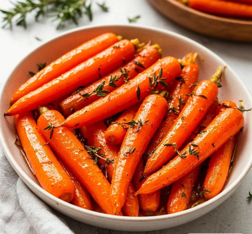 ВКУСНЫЙ И ПОЛЕЗНЫЙ ПЕРЕКУС — ЗАПЕЧЕННАЯ ГЛАЗИРОВАННАЯ МОРКОВЬ С МЕДОМ И ТИМЬЯНОМ Мяу, мои сладкие корешки! 😺 А вы знали, что морковка может быть невероятно гламурной? Сегодня мы превратим её в изысканное блюдо, которое покорит любого гурмана! Запечённая с мёдом и тимьяном, она становится сладкой, ароматной и тающей во рту! Это же просто сказка! 🧡✨ ЗАПЕЧЕННАЯ ГЛАЗИРОВАННАЯ МОРКОВЬ С МЕДОМ И ТИМЬЯНОМ ИНГРЕДИЕНТЫ: 🧾 •500 г молодой моркови (крупную нарезать брусочками) •2 ст.л. оливкового масла •2 ст.л. мёда или кленового сиропа •1 ч.л. бальзамического уксуса •2 веточки свежего тимьяна •Соль, черный перец по вкусу •Щепотка зиры (по желанию) ВРЕМЯ ПРИГОТОВЛЕНИЯ: ⏰ 35 минут СЛОЖНОСТЬ:🐾 Проще некуда ПОШАГОВЫЙ РЕЦЕПТ: 👩🍳 1. Разогреть духовку до 200°C. 2. Морковь очистить, выложить на противень. 3. Смешать масло, мёд, уксус, соль и перец. 4. Полить морковь соусом, перемешать. 5. Разложить веточки тимьяна. 6. Запекать 25-30 минут до карамелизации. СОВЕТЫ: 💡 •Для хрустящей корочки н