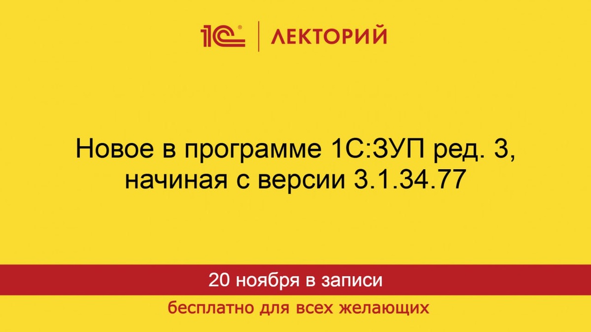 Новое в программе 1С:ЗУП ред. 3, начиная с версии 3.1.34.77 В ходе лекции Анастасия Гурьева, эксперт 1С, расскажет о новых возможностях программы «1С:Зарплата и управление персоналом 8» ред. 3, реализованных начиная с версии 3.1.34.77: 🟠больничный во время простоя; 🟠изменения в учете отгулов; 🟠доработки учета бронирования граждан; 🟠поддержка новых типов сообщений СЭДО; 🟠заполнение статистической формы № 57-Т; 🟠плановые погашения задолженности и др. изменения. ☝️ Зарегистрироваться на лекцию 🚨Подписывайтесь на @lector_1c