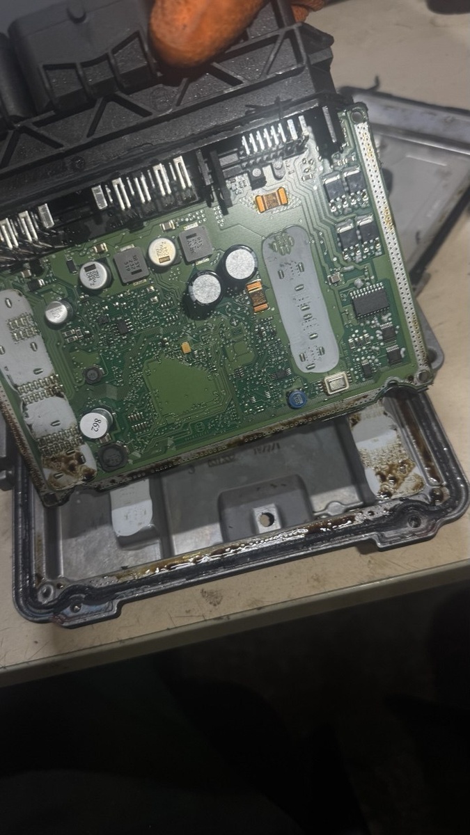 MINI R серии. Рестайлинг. Блок управления двигателем (DME) наполнился моторным маслом). Давно уж не видели такой неисправности - в 2013 - 2018 часто встречались. Был еще ремкомплект, который при помощи специального приспособления с куском провода проталкивали в поддон). Дилер в запущенных случаях менял по гарантии ЭБУ, жгут проводов, клапан. Сейчас тоже достаточно часто меняем уже в сборе электромагнитный клапан регулировки давления масла, но чтобы по проводам от этого клапаночка масло добралось до блока управления... Обычно наш механик, зная эту неисправность, на ранней стадии видит этот косяк и устраняет в зачатке. Этот MINI впервые у нас в СПб и за все время никто не удосужился "стрельнуть" глазом( https://london-auto.ru/mini/dvigatel/neispravnost-klapana-regulirovki-davleniya-masla-mini-2010-2016neispravnost-klapana-regulirovki-davleniya-masla/