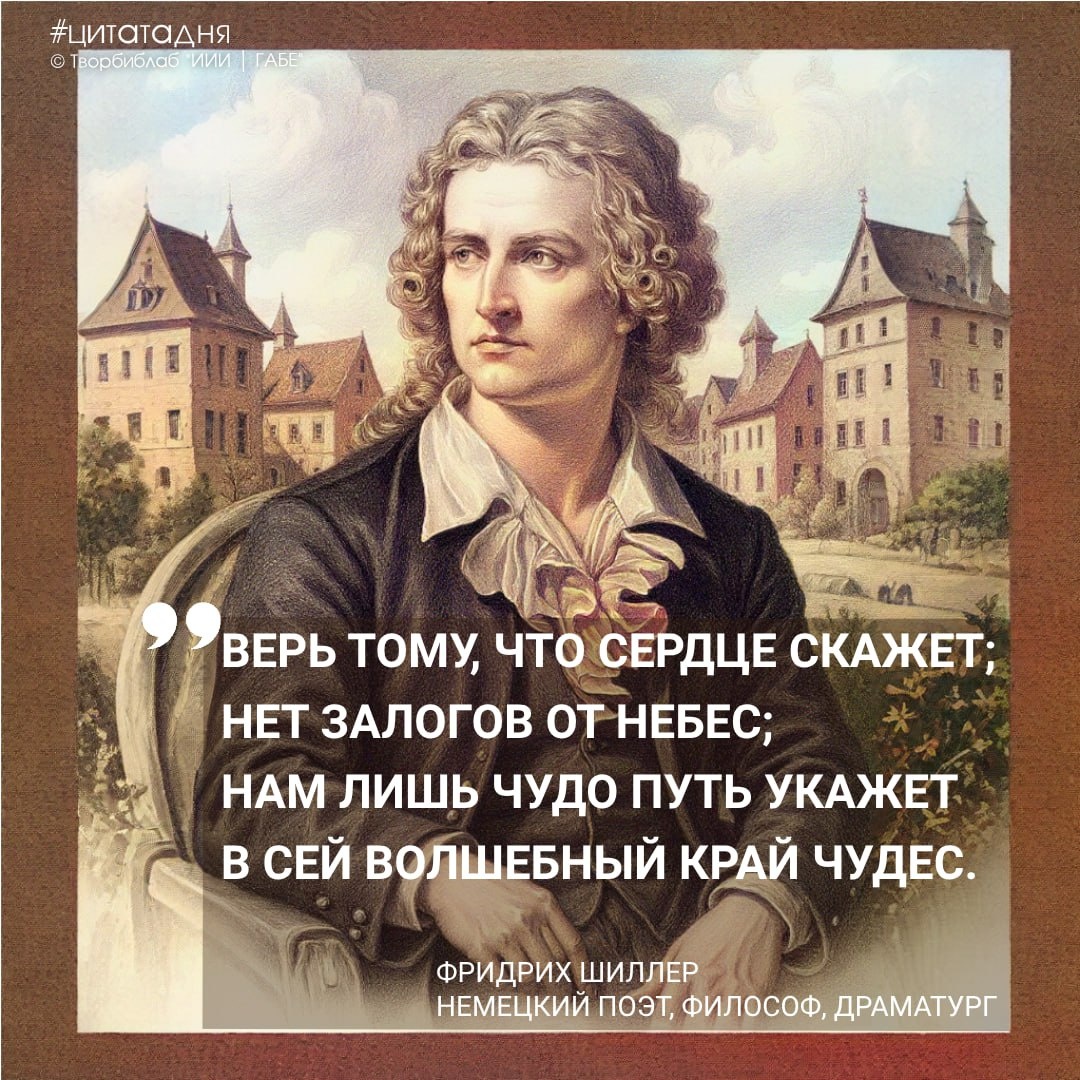 Сегодня исполняется 266 лет со дня рождения великого немецкого поэта, драматурга и философа Фридриха Шиллера (1759-1805), чьё творчество оказало огромное влияние на развитие немецкой классической литературы, породив целое поколение последователей. Жизнь Шиллера была насыщенной и противоречивой. Он оставил карьеру ради литературы, писал революционные тексты и брал деньги в долг, чтобы расплатиться с кредиторами. Но несмотря на трудности, стал самым известным литератором своего времени. Шиллера можно назвать революционером, интеллектуалом, романтиком и реалистом одновременно. Он был популярным писателем и глубоким мыслителем. Но самое удивительное — он умел сочетать несочетаемое. В пьесах, лирических стихах, исторических и эстетических трудах, а также философских размышлениях отразилась гениальность Шиллера — способность объединять разные стили и направления. Обязательно прочитайте Шиллера — его произведения подарят незабываемые впечатления! #цитатадня #Человек_дня #ЗарубежнаяЛитерату