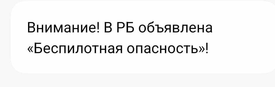 Государственный комитет РБ по чрезвычайным ситуациям уведомил о введении режима опасности, связанного с беспилотниками, на всей территории Башкирии. Службы спасения настоятельно рекомендуют гражданам избегать нахождения на открытых пространствах и не приближаться к оконным проемам внутри зданий.