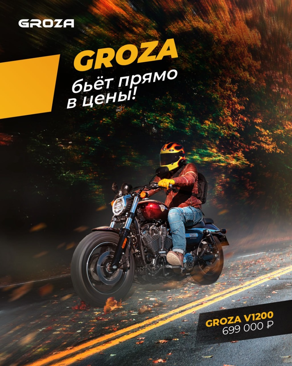 Громкий, брутальный, роскошный Groza V1200. Это мотоцикл с 1200-кубовым двигателем, конструктивно повторяющим легендарный мотор Evolution от Harley Davidson. И в эту Черную пятницу на него суперскидка! 🔥Чистые, лаконичные линии, массивная рама, низкая посадка — классика в самом честном ее проявлении. 🔥LED-фара оригинальной формы — взгляд, который пронзает ночь. 🔥Цифровая приборная панель — стиль и функциональность. 🔥Ремень от USA Gates — плавный ход и минимальное обслуживание Выбирайте Groza V1200 в двух цветах: черном и синем. Только с 31 октября по 16 ноября мотоцикл доступен по суперцене 699 000 ₽.