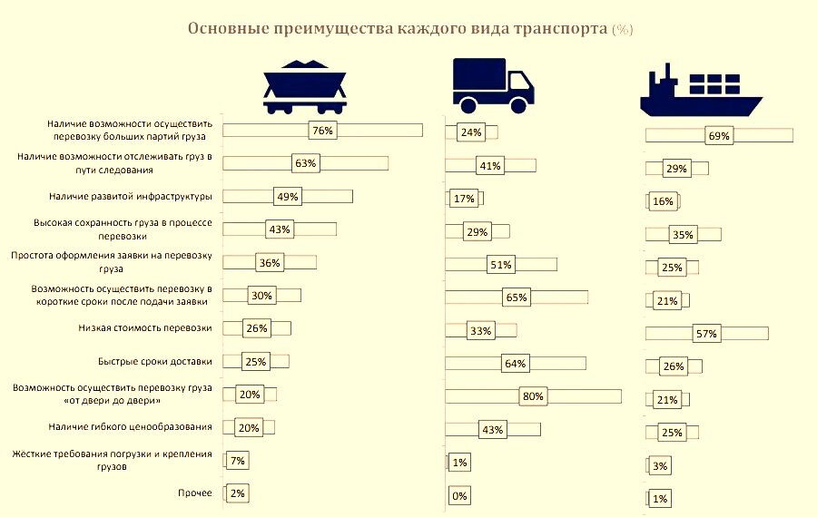Проблема выбора наиболее выгодного способа перевозки актуальна для широкого круга участников логистического рынка. Как правило, каждый тип транспорта оптимален для своей специфики: автомобиль — максимум гибкости на малых и средних расстояниях, железная дорога — экономичность при массовых и тяжелых грузах, авиация — приоритет скорости и специфические потребности, морской и речной транспорт — незаменимы для интерконтинентальных и больших внутрироссийских линий с большим объёмом.