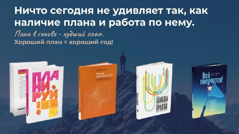 Ставьте ясные цели и превращайте их в рабочие планы Сезон планирования в разгаре — самое время усилить себя качественной опорой. Подобрала книги, которые читаются легко и дают высокую концентрацию практики. Успеете и изучить, и внедрить — особенно если работаете быстро и на результат. Здесь и сейчас (для стратегии и операционки): 🦪«Планируй», Игорь Манн 🦪«Точки контакта 3.0», Дмитрий Турусин 🦪«Каналы продаж», Игорь Манн Новинка для энергии и вдохновения: 🦪«Всё получится!», Игорь Манн, Елизавета Манн Читайте! Хорошие книги помогают в достижении нужных результатов🙂