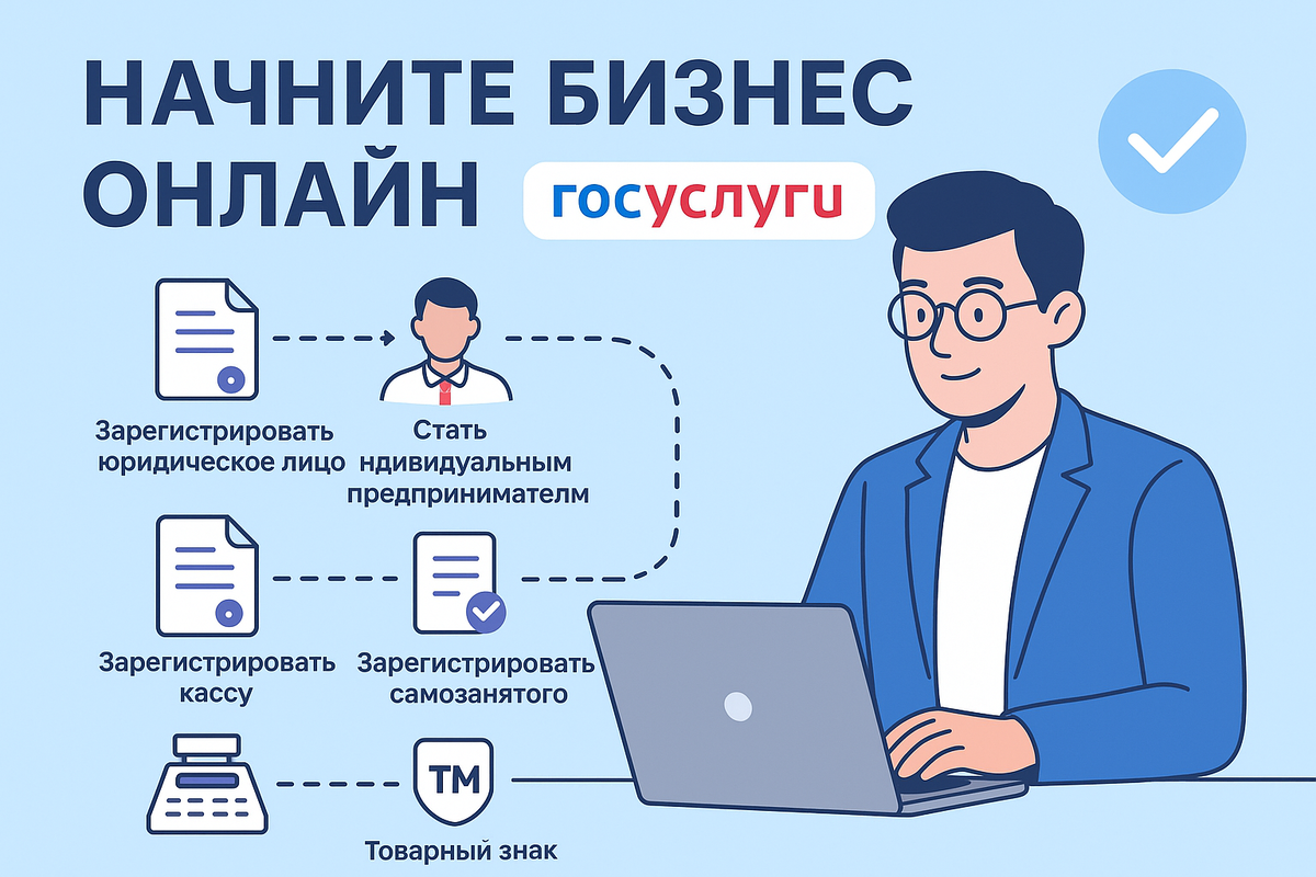С декабря 2024 года на портале Госуслуги появилась новая «жизненная ситуация» под названием «Начните бизнес онлайн». Это не просто очередной раздел на сайте — это целый комплекс цифровых сервисов, объединяющих всё, что нужно предпринимателю на старте: от регистрации ИП до оформления кассы и товарного знака.