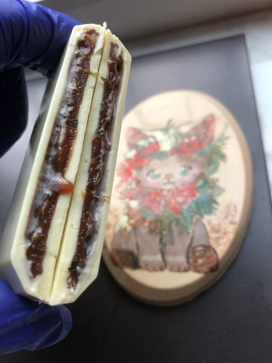 Добрый день🤗! Сладкий пирожок😍! Как-то расслабилась работая над ним, были на то причины. И дала волю фантазии😌! Думала нарисую закрою и сделаю вторую. Закрывала формы без проблем. В уроке все оговорено и даны рекомендации🙌! Тут главное, четко понимать и следовать. Начинки очень интересные. Ганаш с печеньем. Интересная структура получилась А карамель. Это вообще нечто😍🙌! Сливки, изюм, мята. Сумасшедшее сочетание. И хорошо играет с ганашом. Спасибо за такой «пирожок»