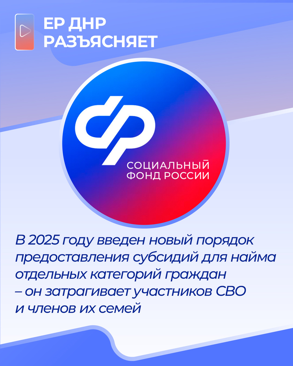 В 2025 году введен новый порядок предоставления субсидий для найма отдельных категорий граждан – он затрагивает участников СВО и членов их семей. Подробнее о нём рассказала управляющая отделением Фонда пенсионного и социального страхования Российской Федерации по Донецкой Народной Республике Галина Сагайдакова. «Особенностью 2025 года стало расширение категории получателей господдержки и увеличение размеров отдельных выплат. Трудоустройство участников СВО стало одним из ключевых направлений государственной политики. Программа реализуется через систему субсидий работодателям, которые стимулируют создание рабочих мест, частично компенсируют расходы на заработную плату и помогают решить проблему профессионального переобучения». К числу граждан, за которых государство предоставит субсидии, относятся ветераны СВО, члены их семей; инвалиды; одинокие и многодетные родители, воспитывающие несовершеннолетних детей или детей-инвалидов и ряд других. Также Галина Сагайдакова рассказала, какие ест