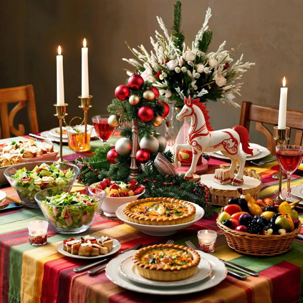 Грядущий Новый год у нас - год Красной Огненной Лошади. А это значит, что в приоритете салаты из овощей, фруктов и зелени. С мясом и морепродуктами осторожно, лошадки этого не любят.