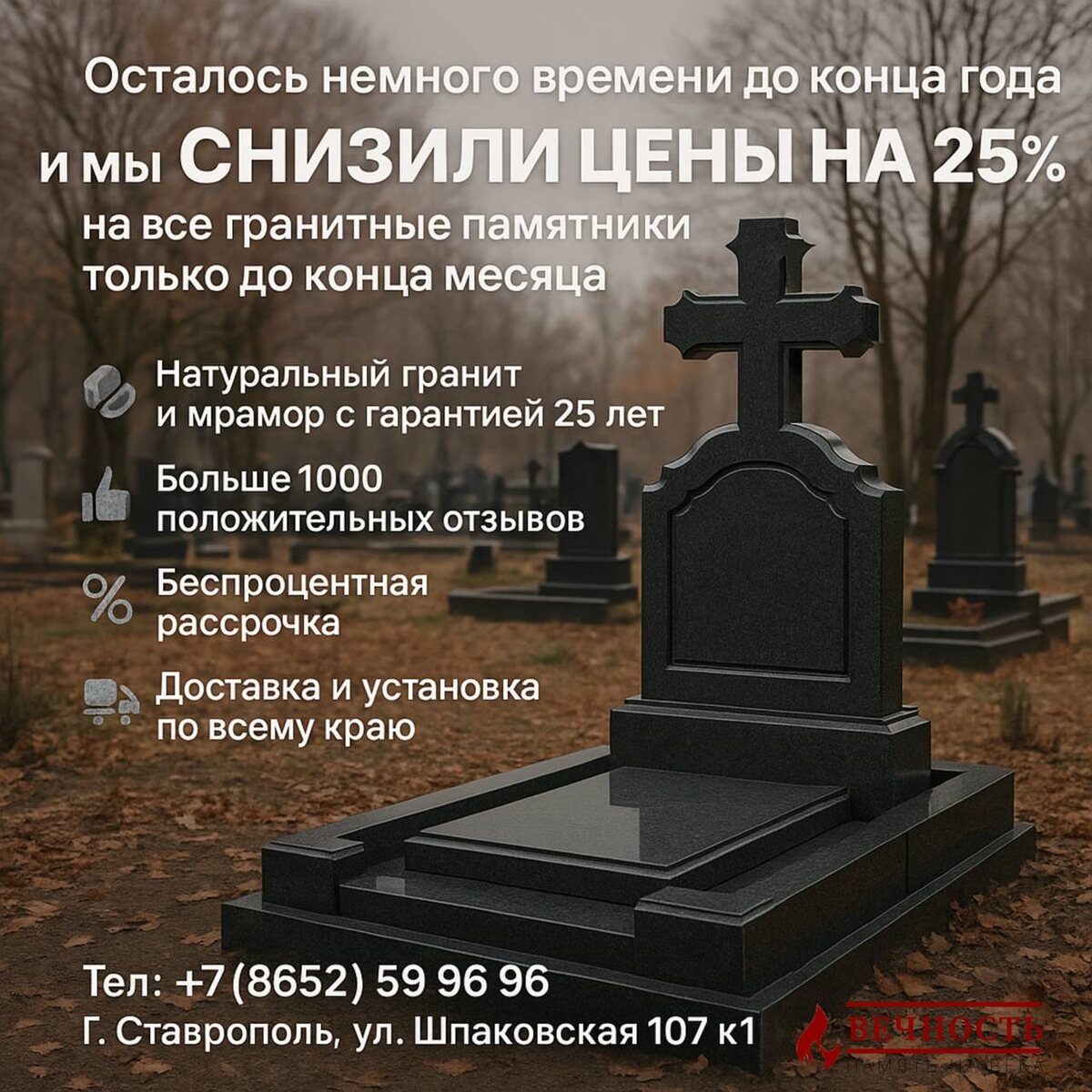 ΡΠ°Π½ΠΈΡΡ ΠΏΠ°ΠΌΡΡΡ Ρ ΡΠ²Π°ΠΆΠ΅Π½ΠΈΠ΅ΠΌ ΠΈ Π·Π°Π±ΠΎΡΠΎΠΉ. ΠΠΎΠ·Π°Π±ΠΎΡΡΡΠ΅ΡΡ ΠΎ ΠΌΠ΅ΡΡΠ΅ ΠΏΠ°ΠΌΡΡΠΈ ΡΠΆΠ΅ ΡΠ΅Π³ΠΎΠ΄Π½Ρ - ΡΠΏΠΎΠΊΠΎΠΉΠ½ΠΎ ΠΈ Π±Π΅Π· ΡΠΏΠ΅ΡΠΊΠΈ. π ΠΠ°ΡΠΈ Π°Π΄ΡΠ΅ΡΠ°: π Π³. Π‘ΡΠ°Π²ΡΠΎΠΏΠΎΠ»Ρ, ΡΠ». Π¨ΠΏΠ°ΠΊΠΎΠ²ΡΠΊΠ°Ρ, 107 ΠΊ1 π Π³. Π‘ΡΠ°Π²ΡΠΎΠΏΠΎΠ»Ρ, ΡΠ». ΠΠ½Π΄ΡΡΡΡΠΈΠ°Π»ΡΠ½Π°Ρ, 31 π Π’Π΅Π»Π΅ΡΠΎΠ½: 8 (8652) 59-96-96 βοΈ WhatsApp: https://wa.me/78652599696