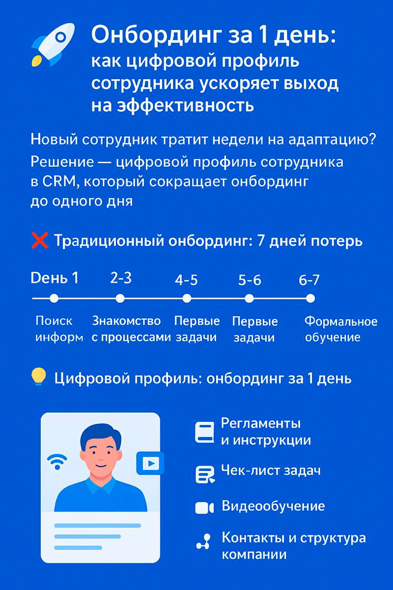 Покажем кейс: как за 1 день сделать новичка полезным с помощью Битрикс24. Сотрудник пришёл. Эйфория прошла. Реальность: до продуктивности — недели. В это время новичок:
